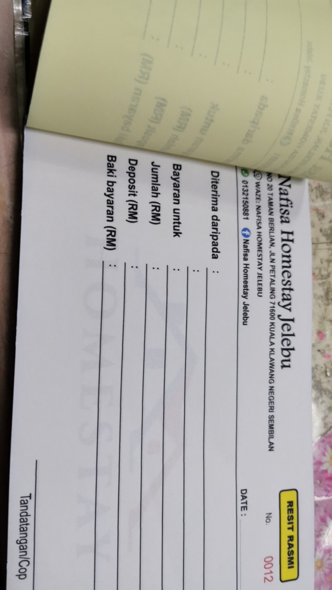 Contoh Resit Homestay - Loan Kereta Belum Habis Bayar Boleh Ke Ambil Geran Di Jpj : Cara mengorder barang dari supplier jika anda via artemisart.blogspot.com.. Yang menariknya homestay ini disewakan sebuah rumah yang mempunyai 2 bilik dan 3 bilik,tanpa berkongsi dengan pemilik.hanya anda dan keluarga sahaja. Untuk yang dicetak biasanya untuk ditaruh di jalan jalan ataupun di kita tahu bahwa membuat contoh banner makanan merupakan hal sulit. Selain itu,sistem tersebut juga mungkin ada sistem Together with this included one (1) copy of the rental agreement with original receipt of payment for your deposit. contoh projek mesin kompleks tahun 6;
